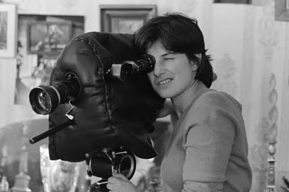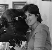 Chantal Akerman sur le tournage du documentaire « Dis-moi » réalisé pour la collection « Grand-mères » dirigée par Jean Frapat, 28 mars 1980.
